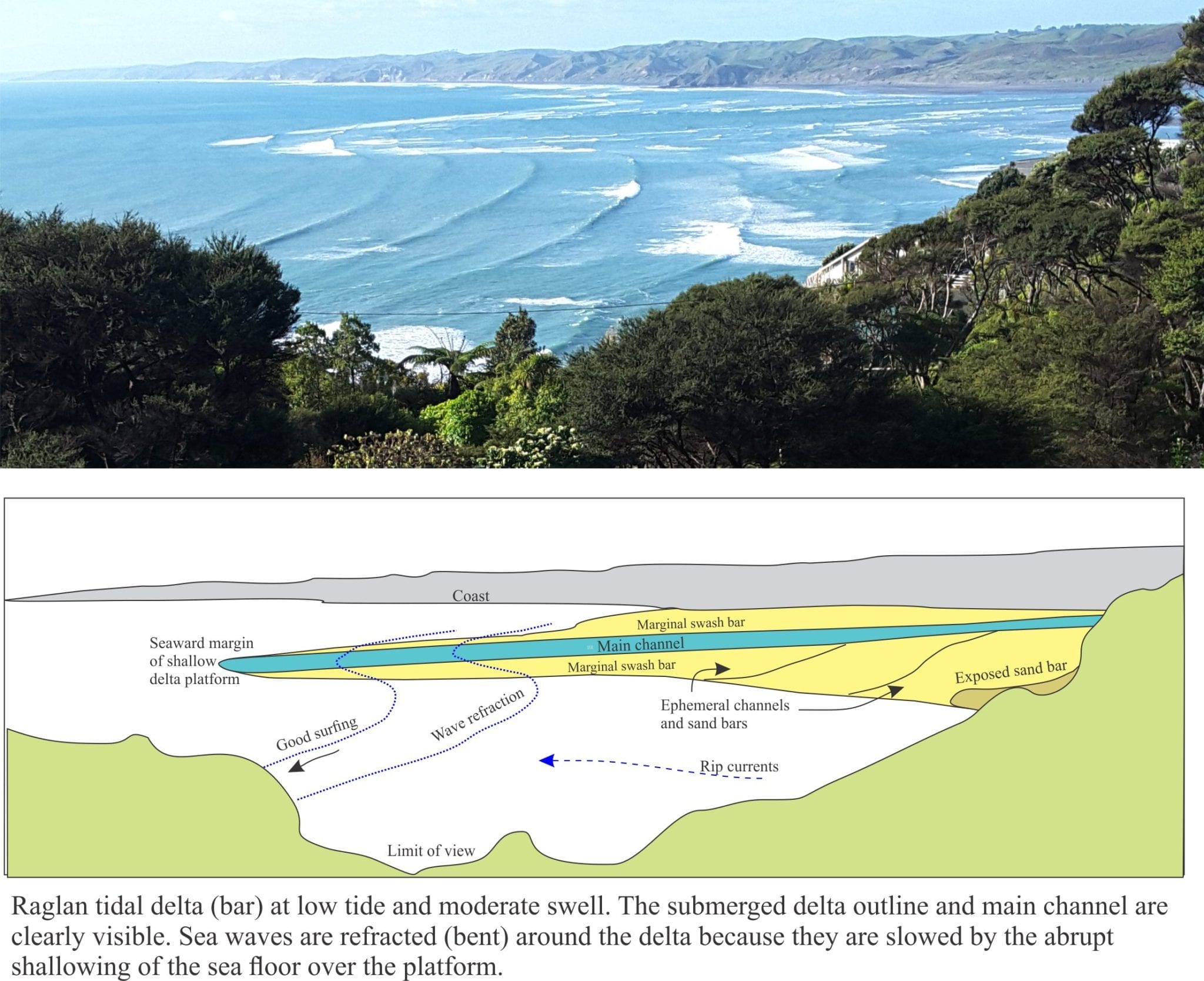 The ebb tidal delta outboard of Raglan Harbour, N.Z. and explanatory diagram